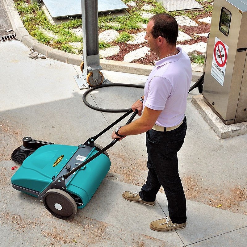 Questa macchine per la pulizia è operata a spinta ed è la soluzione ideale per la pulizia professionale di viali, giardini, condomini, impianti sportivi, magazzini.