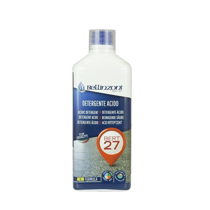 Detergente altamente concentrato a base di acidi abbattuti per granito, ceramica, gres. Ideale per sporchi molto resistenti, eliminare anche ruggine e salnitro. BERT 27 Ha il pregio di formare uno strato schiumoso che non cola durante l’uso in verticale. Speciale per la profonda pulizia dei materiali dopo la posa. Disponibile in bottiglia da 1 Lt e tanica da 5 Lt.