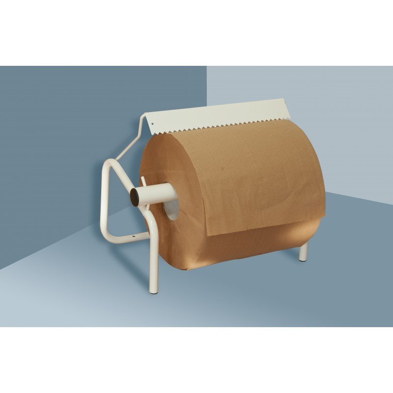 Carrello a muro verniciato per rotoli di carta asciugatutto.