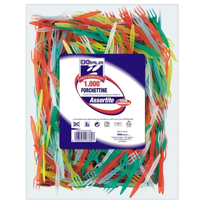 Forchettine 3 punte colorate confezioni da 1000 pz.