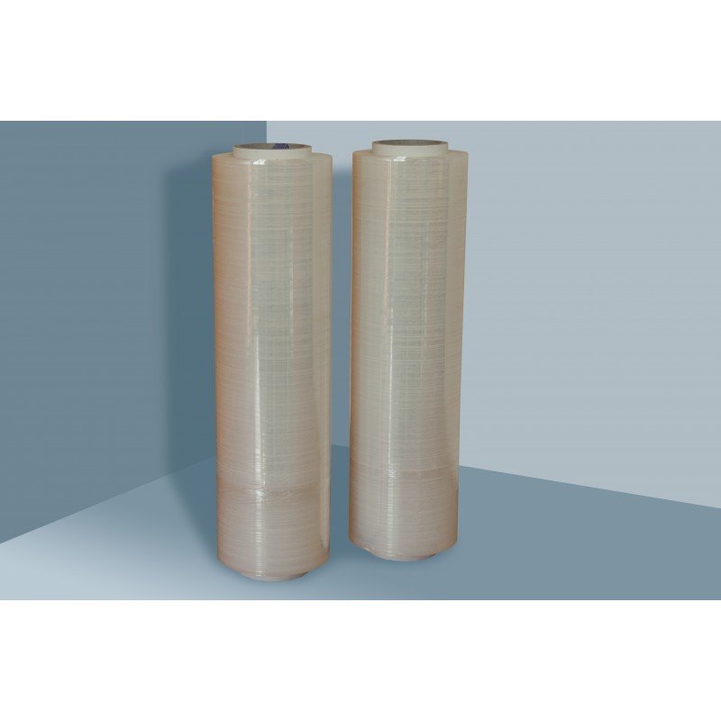 Film estensibile manuale trasparente LLDPE atossico e riciclabile, spessore 23/30 micron, resistente e flessibile. Rotoli H. 50 cm peso indicativo 5 Kg. Il film permette un buon fissaggio dei bancali durante il trasporto o lo stoccaggio a magazzino.